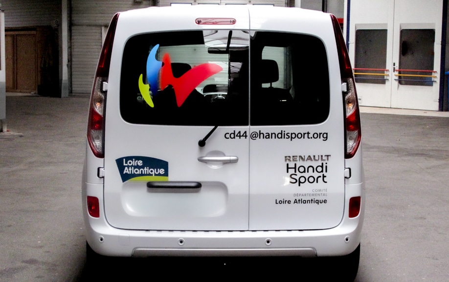 Un covering institutionnel d’un minibus conçu pour refléter l’engagement du Comité Handisport 44