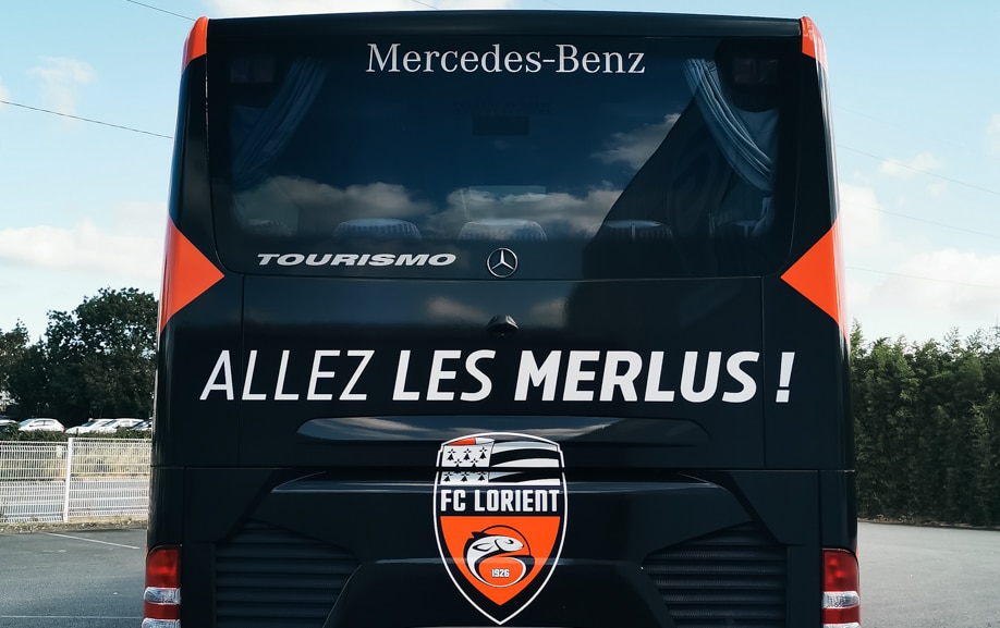Pour habiller le bus des joueurs du FC Lorient, SPORTSIGN a conçu un covering total de bus associant force visuelle, précision technique et respect de l’identité emblématique du club noir et orange. L’objectif était de créer une livrée reconnaissable instantanément, que ce soit lors des déplacements officiels ou à l’arrivée du groupe sur les terrains adverses.